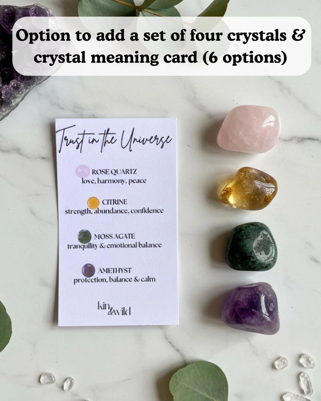 ✨ Optional Add-On: Add a Mini Crystal Set for extra good vibes, with 6 options to choose from. The ideal self care gift for gothic home decor, with an incense holder and more, this is the perfect manifestation set.