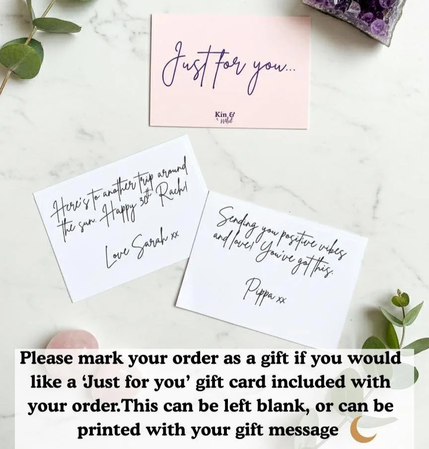 If you are ordering as a birthday gift for her, crystal gift, spiritual gift, or thinking of you gift please mark your order as a gift to receive it gift wrapped. I will also include our ‘just for you’ gift card in your order too - I can include printed gift message for when you are sending directly to the recipient, or send this blank for you to write yourself :)