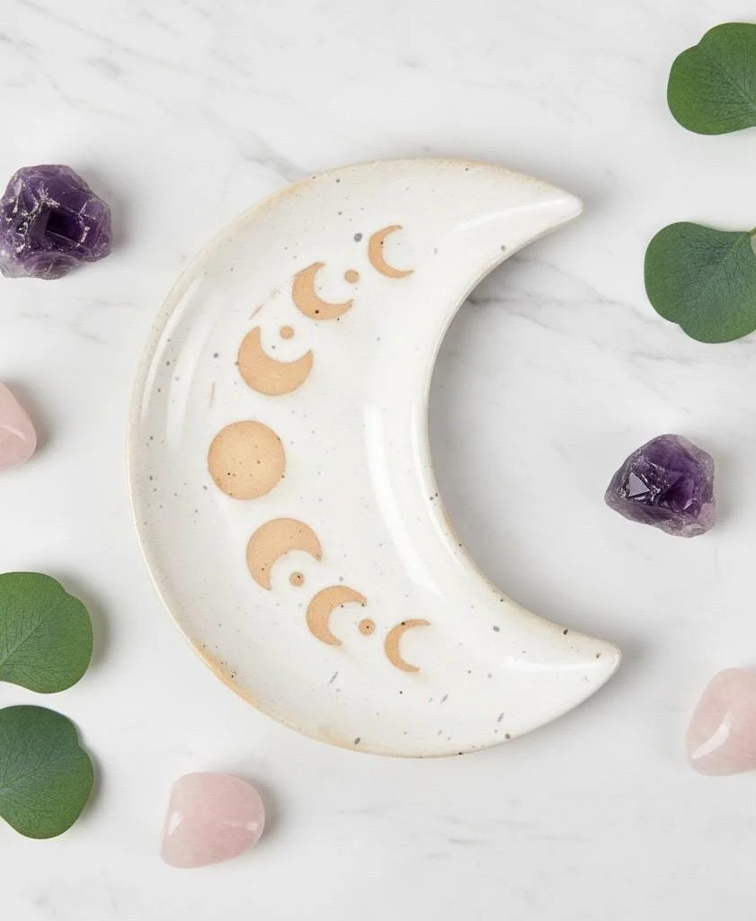 -Stoneware Moon Phases Trinket Dish (ideal for displaying crystals or jewellery)