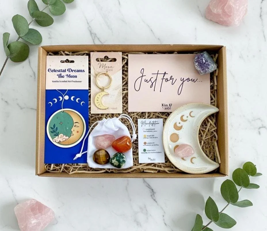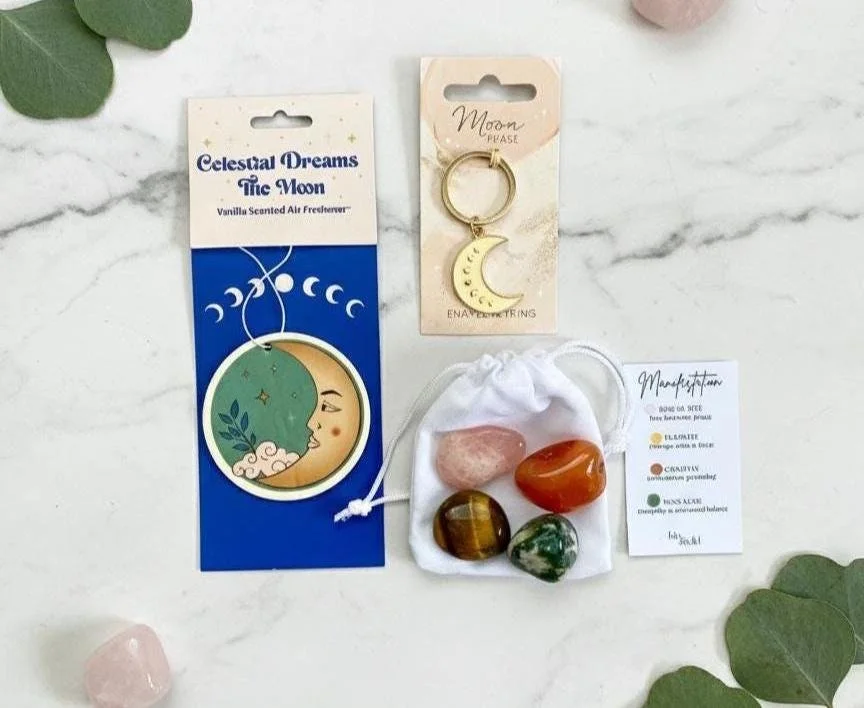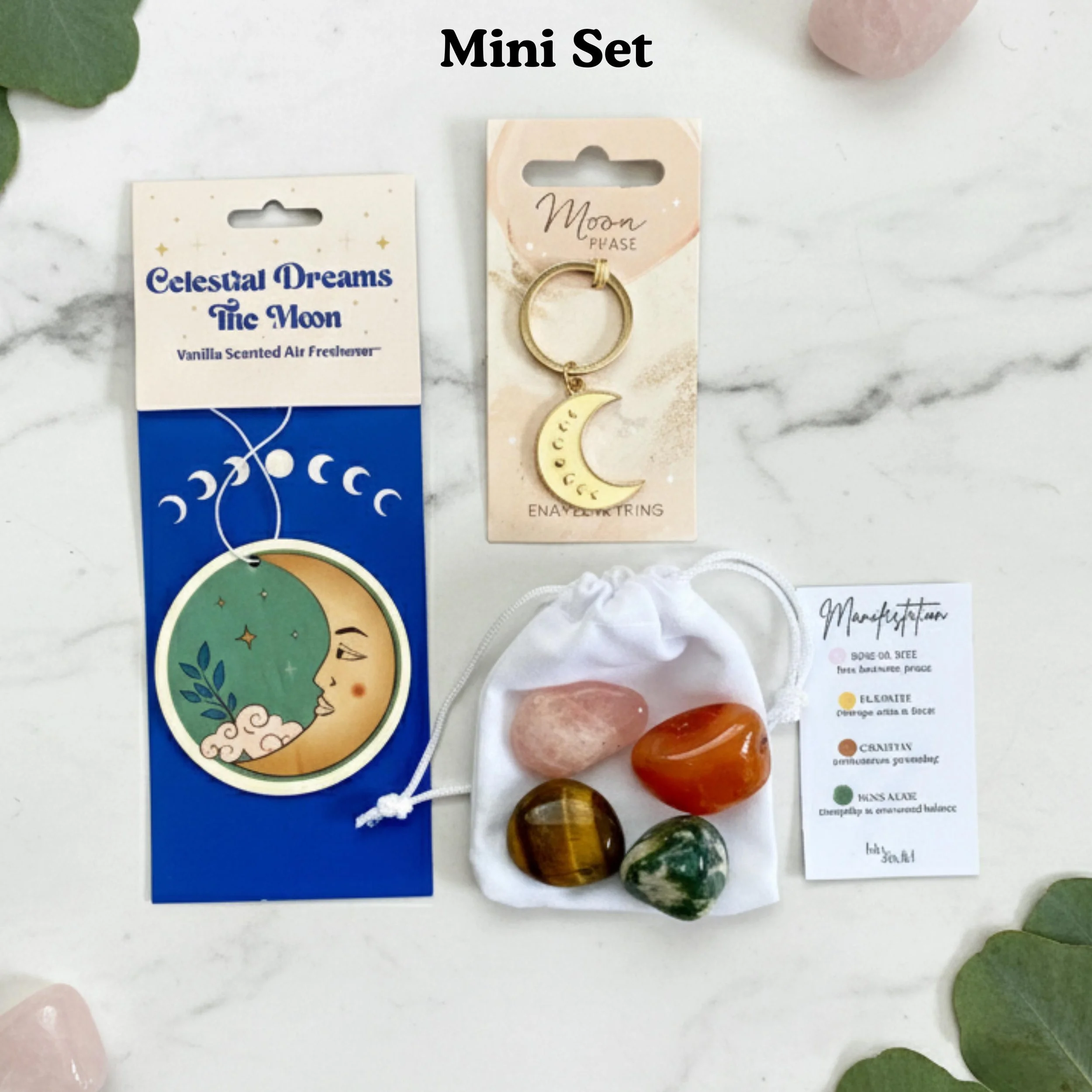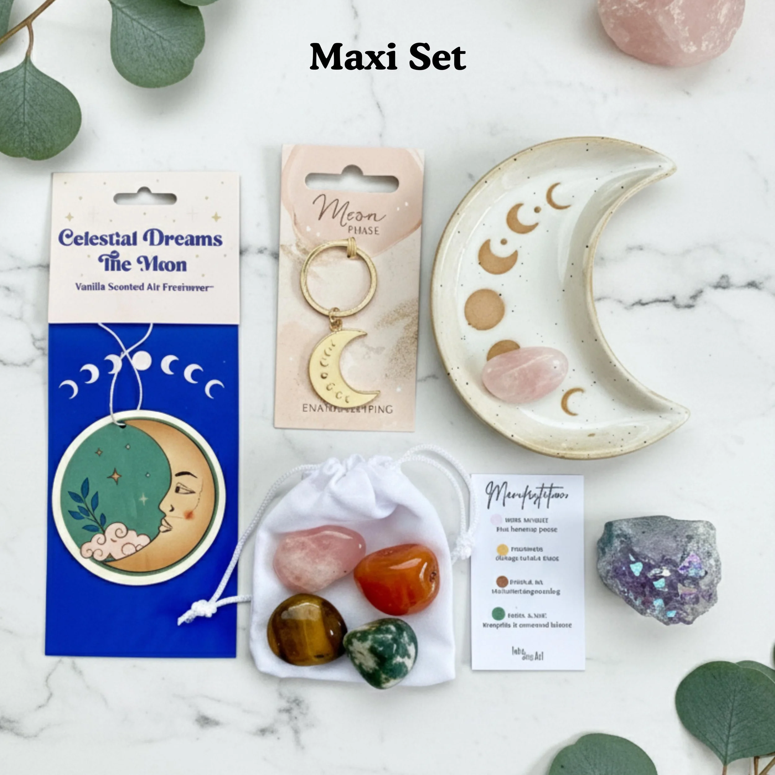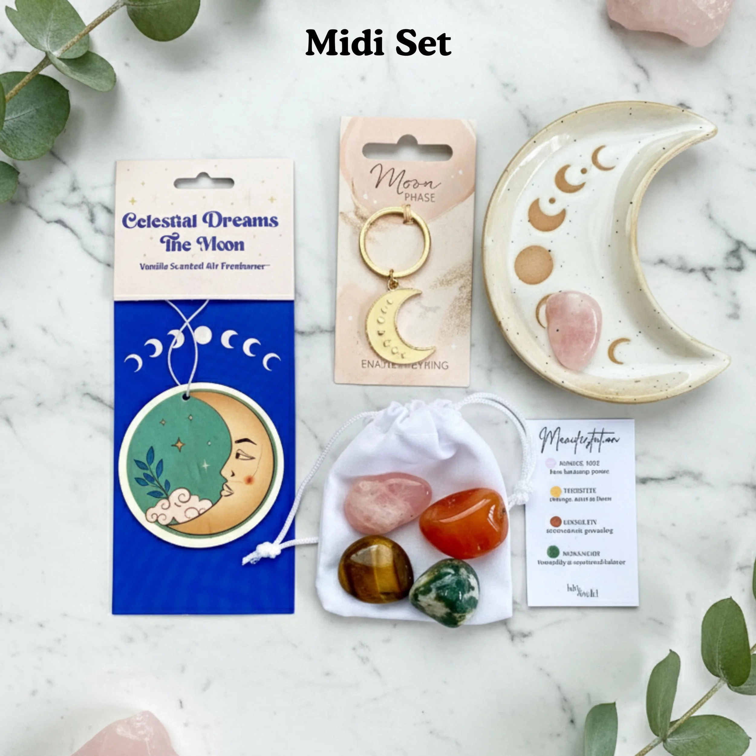 Each set has been designed to help you connect with your intuition, manifest your desires, and invite positive energy into your space. Whether you’re celebrating a birthday, new beginnings, or simply treating yourself to a spiritual moment of calm, this moon-themed gift set makes a thoughtful and enchanting choice.