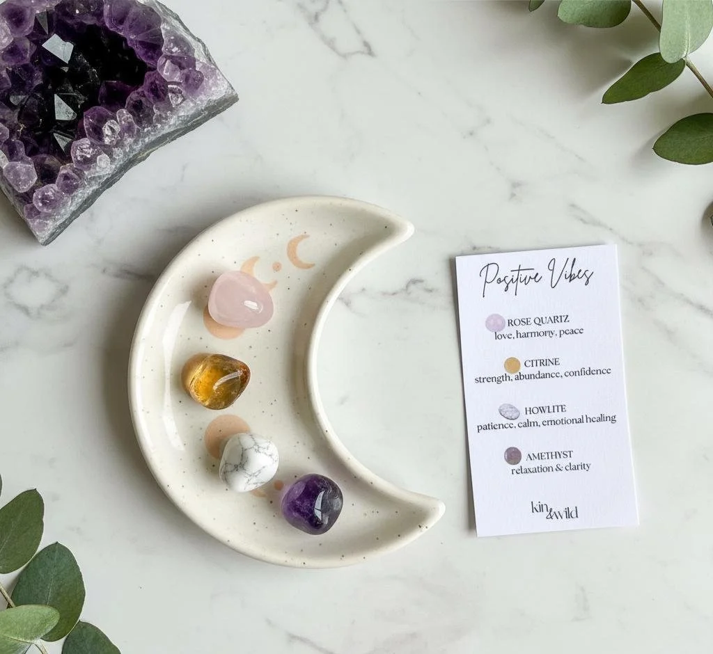 - 1 x Stoneware Moon Phases Trinket Dish — perfect for displaying your favourite crystals or jewellery.