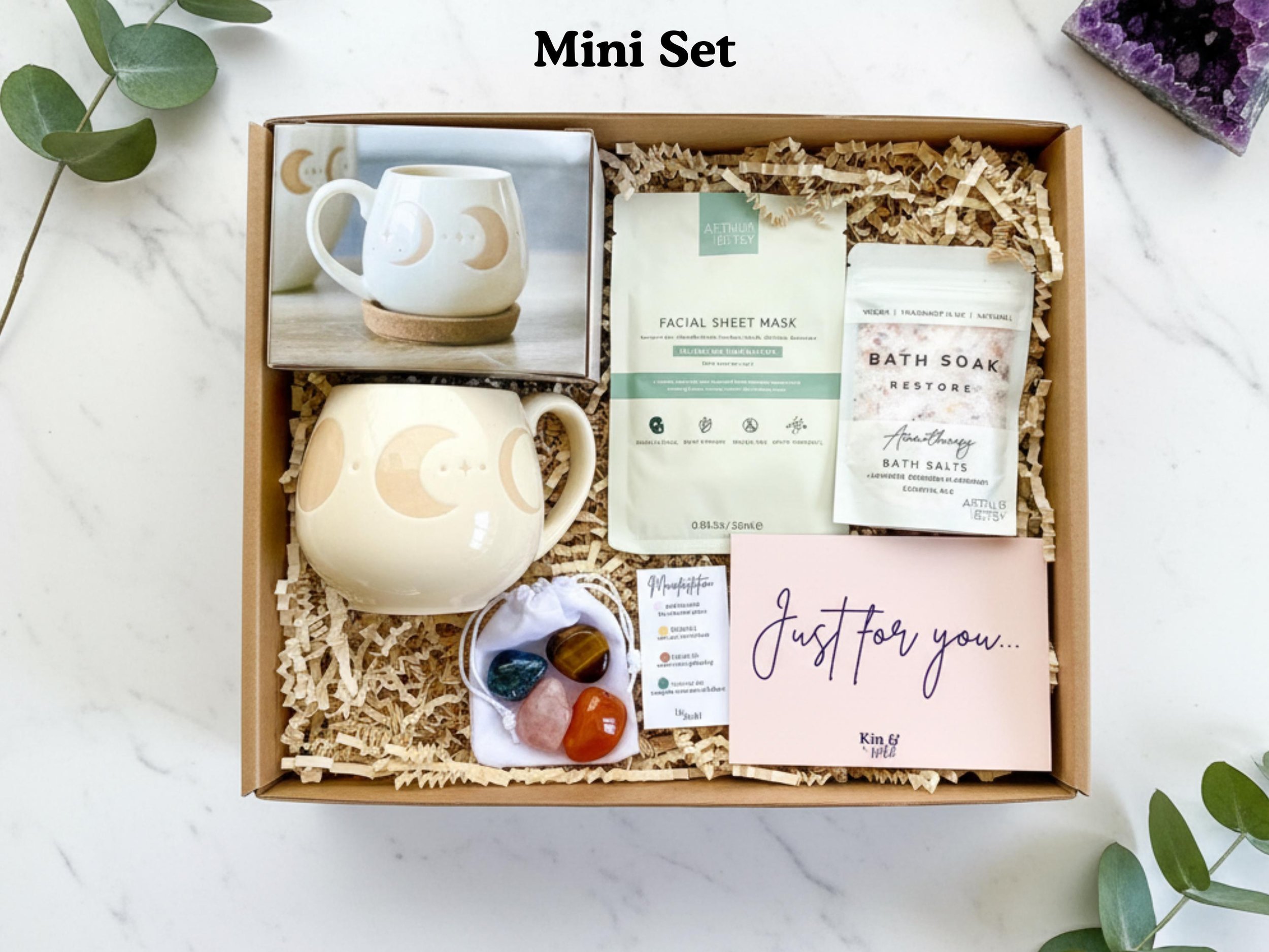Moon Phases Spiritual Pamper Hamper Self Care Gift Set Bath Pamper Set Spiritual Gift for Her Moon Mug Crystal Gift Set Relaxation Box