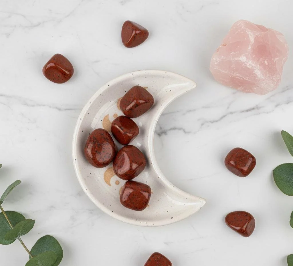 Enhance your spiritual space by pairing your crystals with our stoneware moon phase trinket dish — ideal for displaying your red jasper or other favourite crystals. The natural, celestial design adds a touch of magic to your bedside table, altar, or meditation corner.