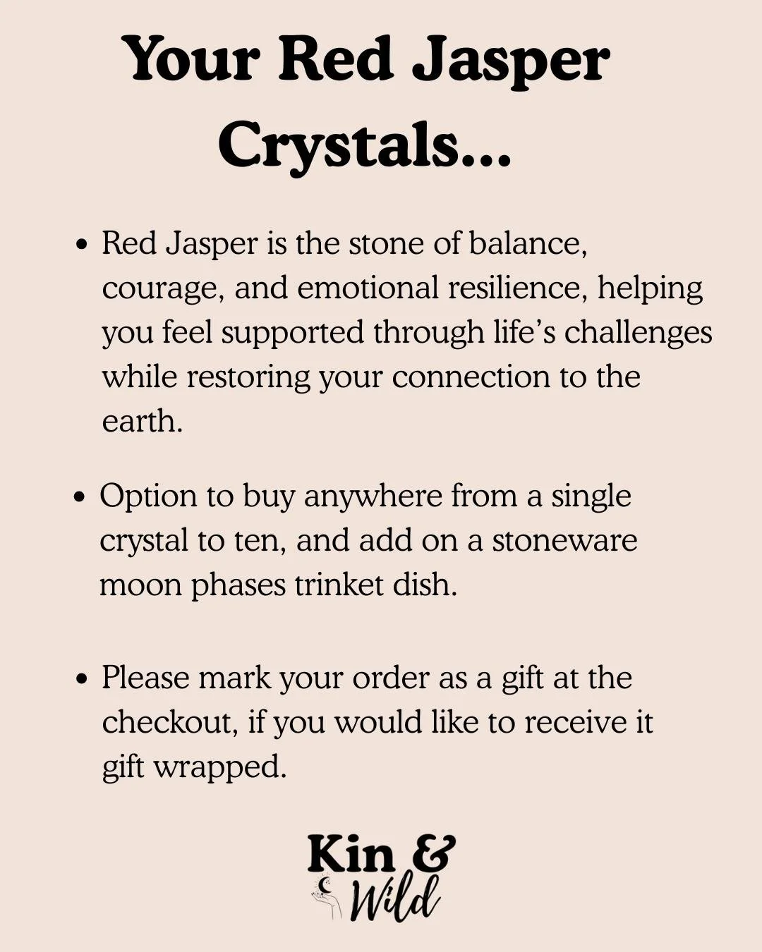 Perfect for meditation, intention setting, or crystal grids, these smooth, polished red jasper crystals can also be displayed beautifully around your home to encourage a sense of grounding and harmony.