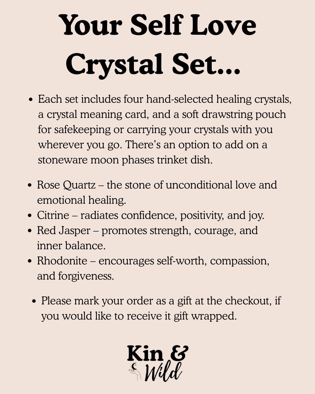- Set of four 'self love' crystals with meaning card